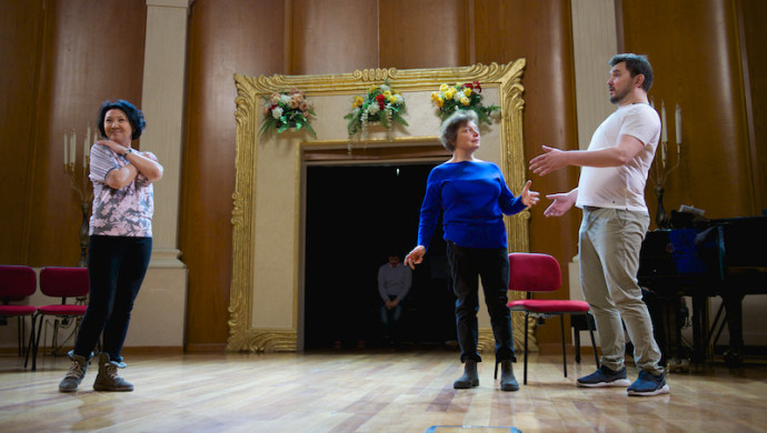 Артисты провели немало репетиций и с дирижером, и с режиссером, а сейчас уже остается расставить последние штрихи на сцене Камерного зала.